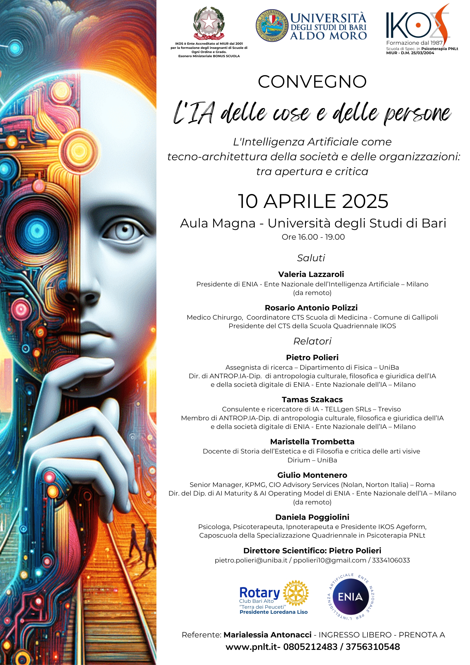 L’incontro si propone di superare gli approcci polarizzati, evitando sia l’entusiasmo cieco per la tecnologia sia il rifiuto allarmistico del suo impatto. Attraverso un dialogo aperto e interdisciplinare, il convegno mira a stimolare una consapevolezza più profonda sul futuro che ci attende, promuovendo una visione in cui l’IA e l’essere umano possano coesistere in modo armonico, senza che l’una soffochi l’identità e l’essenza dell’altro.